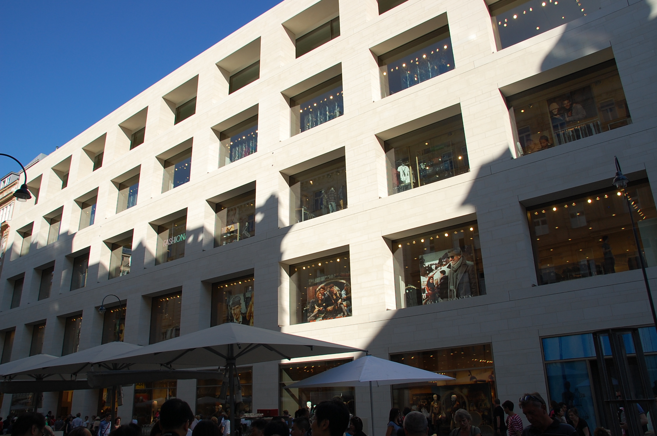 Nun hat auch Wien endlich sein „Weltstadthaus“ – Peek und Cloppenburg eröffnete vor kurzem sein neues Modehaus in der Wiener City. Es überzeugt mit seiner puristischen Fassade, die sich unangestrengt in die historische Umgebung einpasst, mit 85 riesigen Fenstern (Schau-Fenster im Wortsinn), einem gut inszenierten Mix an Mode-Labels und einem speziellen Store-in-Store-Konzept für Fashionistas.