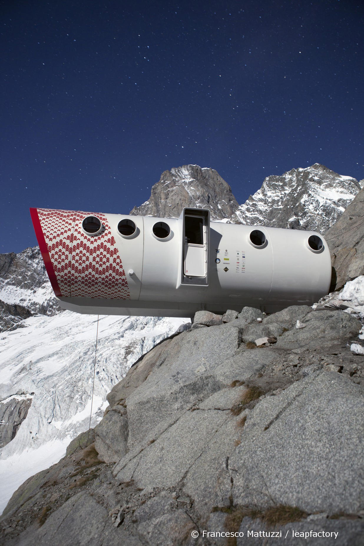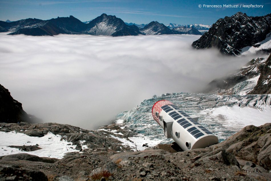Tipp: Spannende Outdoor-Produkte für die Bergwelt entwickelt die italienische Designfirma leapfactory, z.B. ihre Mini-Lodge für Abenteurer (Fotos siehe Blogbeitrag): die Survival-Röhre ist schnee- und sturmsicher, enthält Schlafkojen für 2-12 Personen, Tische, Stühle, Toiletten und Waschbecken, Fotovoltaikanlage auf dem Dach: http://www.leapfactory.it