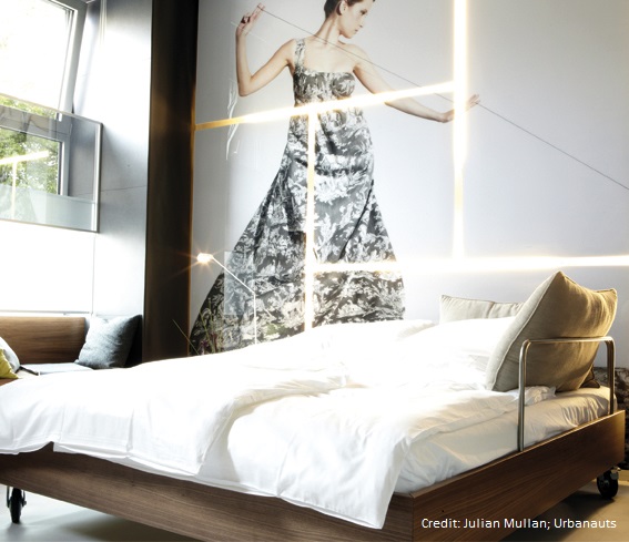 „Wir lieben das Echte. Aus ehemaligen Geschäftslokalen machen wir Hotelzimmer für Abenteurer. Unsere Street Lofts bewahren die Geschichte alter Geschäfte, Werkstätten und Ateliers.“ Das Mission Statement der Urbanauts (Wien) ist Business as unusual. Die jungen Kreativen transformieren leerstehende Gewerbeflächen zu narrativen Lofts und vermieten diese an Touristen. Keine Zwischennutzung von Gewerbeflächen, kein Pop-up-Aktionismus, sondern (sorgsame) evolutionäre Fortschreibung des Genius Loci. Was einmal eine Schneiderei war, bleibt eine – wenn auch neu adaptiert als Hotelzimmer. Stets schimmert die DNA des Ortes durch. Gut designt und gut erzählt. Und intelligent vernetzt mit der Nachbarschaft (in der man z.B. frühstückt, im Café ums Eck oder sich von den Guerillaköchen der „Betonküche“ verwöhnen lässt).
