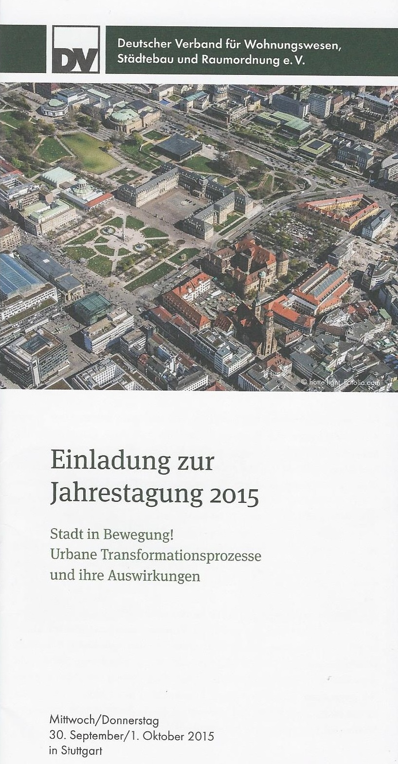 Andreas Reiter hielt vor kurzem einen Vortrag in Stuttgart auf der Jahrestagung des Deutschen Verbandes für Wohnungswesen, Städtebau und Raumordnung über die Stadt im Umbruch.