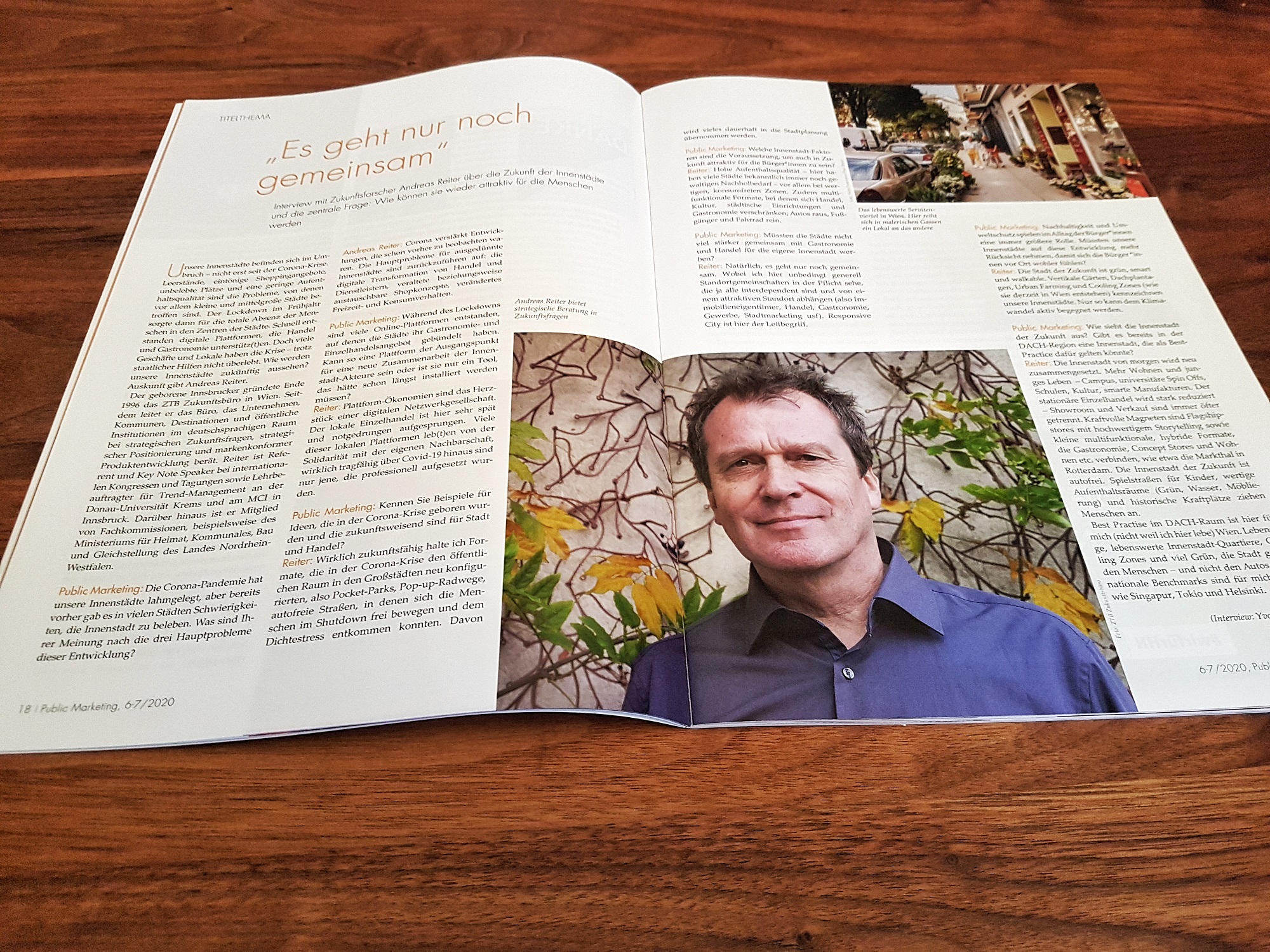 Unsere Erkenntnisse über die Stadt der Zukunft geben wir gerne auch in Publikationen weiter, aktuell z.B. im inspirierenden Magazin Innenstadt des „Netzwerk Innenstadt NRW“ (01/20) https://bit.ly/2YJFkSb oder als Ansprechpartner für Medien, wie im aktuellen Public Marketing (6-7/20).