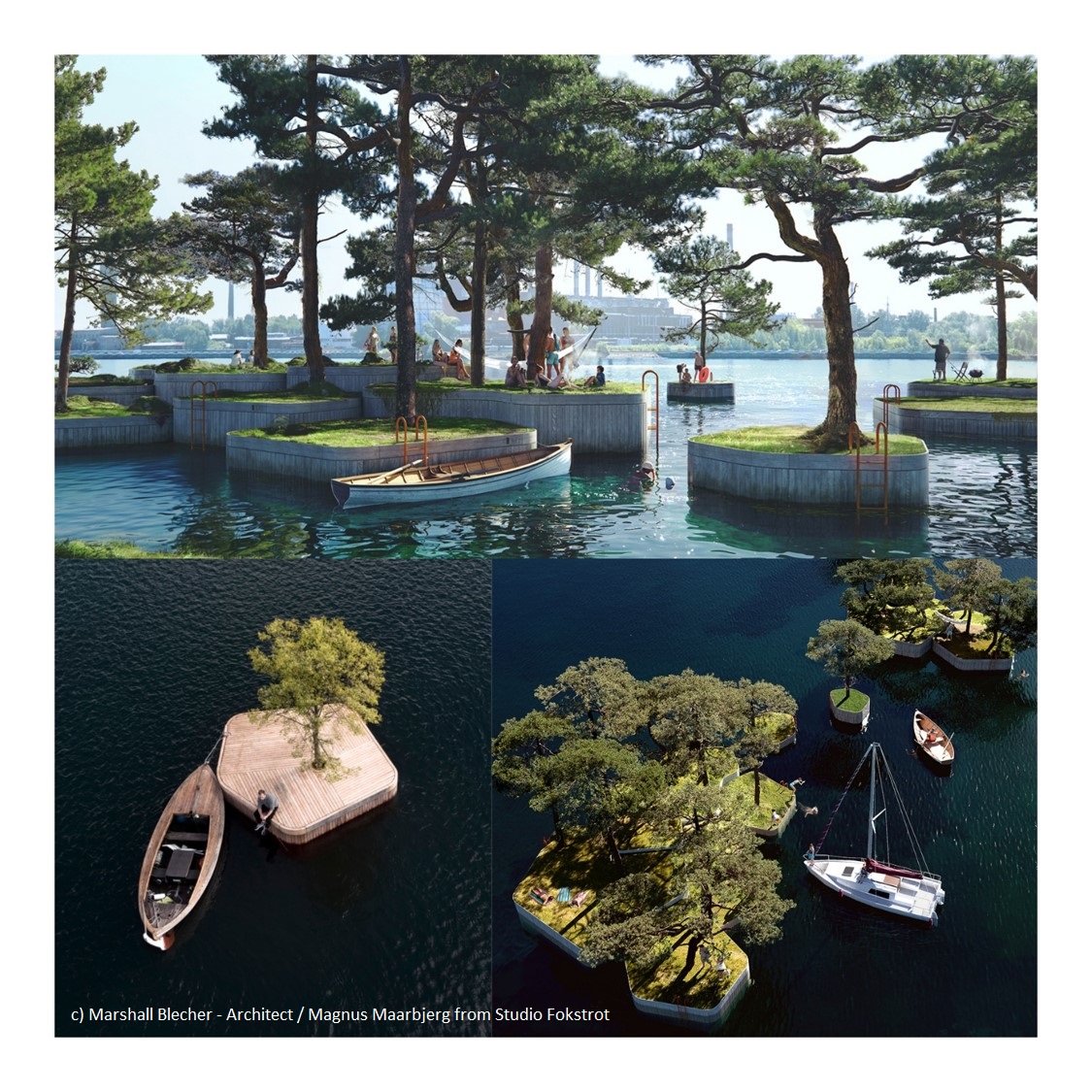 Glücklich aber sind die Städte, die nah am Wasser gebaut sind. Zukunftsrobust freilich sind diese erst dann, wenn sie auch ihre öffentlichen Räume strategisch klug auf das Wasser ausdehnen. Kopenhagen ist hier – wieder einmal – Vorreiter: mit den “Copenhagen Islands” entstehen mitten im Hafen neue Sehnsuchtsorte, eskapistische Freiräume für Bewohner wie Touristen – bewegliche, schwimmende Parks, für jeden frei zugänglich. Bei Bedarf (z.B. für Veranstaltungen) können diese schwimmenden Inseln modular zu einem “Kontinent” zusammengeschlossen werden. (Post-) pandemisches Design für die flüssige Moderne – so entsteht eine neue Ära der städtischen Lebensqualität.