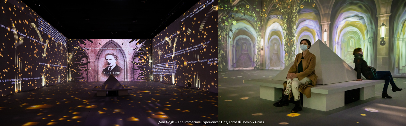Vor einigen Monaten poppten in europäischen Städten (Paris, Brüssel, Linz, Berlin etc.) die ersten immersiven Ausstellungen „Van Gogh: The Immersive Experience“ auf. Ein beeindruckendes Multimedia-Event, bei dem sich Gemälde van Goghs zu übergroßen Projektionen über die Räume riesiger Hallen (etwa der Linzer Tabakfabrik) auswuchsen, ein interaktives, dreidimensionales Sinnenspektakel, bei dem z.B. Sternenhimmel und Sonnenblumen über Wände und Böden aufblitzten und wucherten, die staunenden Besucher einwebten in eine andere Welt.