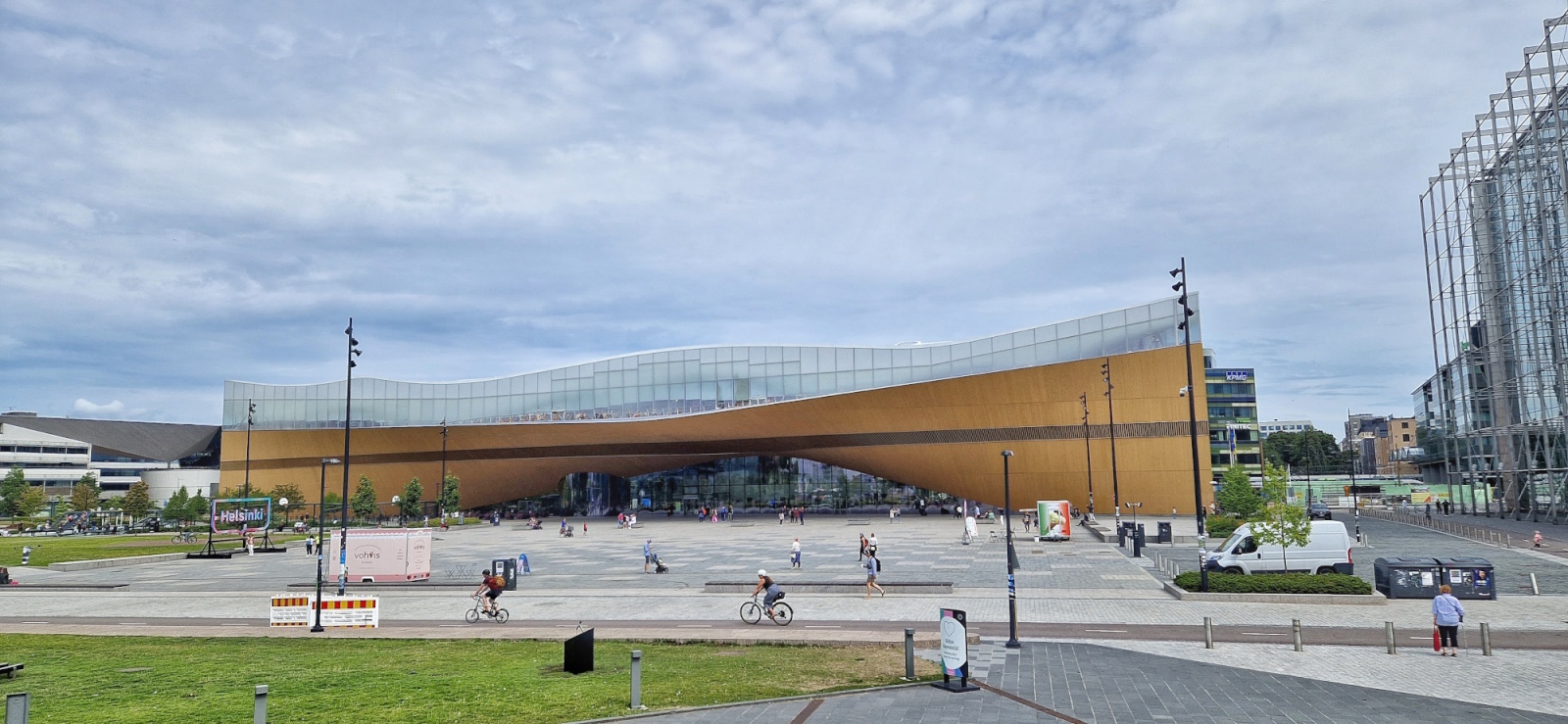 Der Ort in Helsinki, der all diese Qualitäten in sich vereint und an dem sich ganz Helsinki – ob jung oder alt – trifft, ist die zentrale städtische Bücherei: Oodi. Das Signature Building des modernen Helsinki. Dynamisch, eleganter Baukörper, ein schwungvolles Schiff, das das Häusermeer rundum durchteilt, und das alle an Bord nimmt.